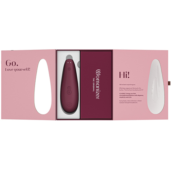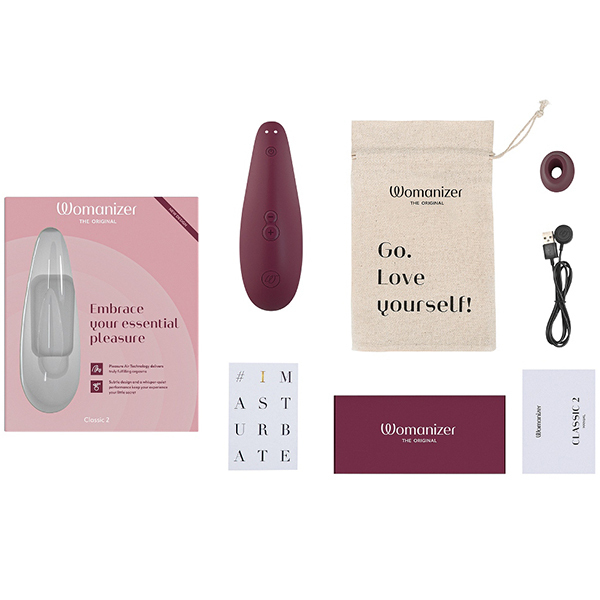 世界初の吸引式バイブとして人気のウーマナイザーから入門用にぴったりな商品が登場しました!「ウーマナイザー クラシック2 (ボルドー)」。 プレミアムほどの高性能さは要らない!でも高級感は失いたくない。 そんな人に最適な商品です♪前作では8段階だった振動機能が10段階へ!吸引部は柔らかな肌触りのシリコンで、オーガズムに達した際に電源ボタンを押せば最弱の吸引力になる新機能「アフタグローフューチャー機能」を搭載。 最弱の振動レベルに切り替わることで「いきなりブツッ」と切れることなく最後まで優しい余韻が楽しめます♪使い方はシンプルでキャップをクリトリスにかぶせるように当てるだけ。 エロティックに吸われキスされているような、あなたの一番敏感で繊細なところへ複雑な快感と刺激を与えてくれます。