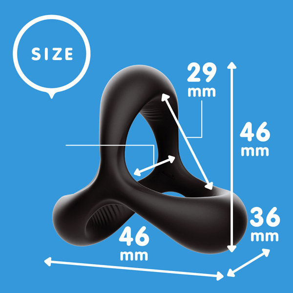 強めの締め付けでドバーッっと出る感を高める!弾力性のある高品質ハードシリコンを使用したペニス用リング。 デルタ形状が根元、サオ、タマの3点をしっかり締め付け!素材は嫌な臭いがなく、特有のスベスベ感で毛の巻き込み緩和にも最適!リング内側には滑り止め付きでズレを軽減しつつ皮戻り防止にも◎早イキ防止、持続力を高めたい男性に。 重量10g