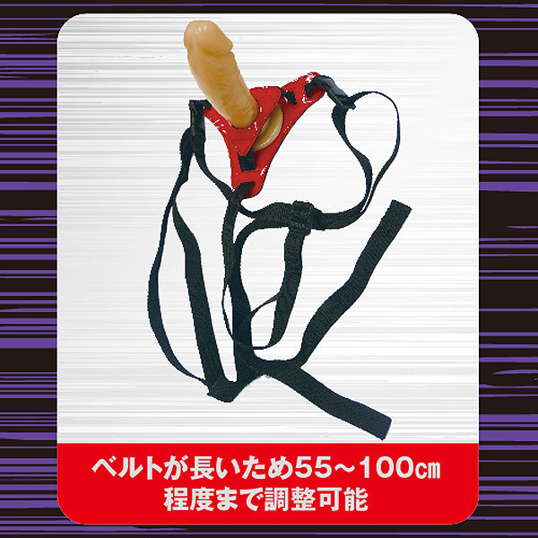 簡単にどなたでも安心して楽しめるペニバンセットです。 長時間の使用でも無理なく楽しめるように負担のかからない作りとなっております♪腰のベルトは55〜100cmの範囲内でサイズ調節が可能。 簡単に固定でき、しっかりとフィットします♪安定感抜群で耐久性も高く、ベルト側のディルド装着穴の直径は38mmですので、お手持ちのディルドでサイズが近いものをお持ちでしたら装着も可能です。 付属のディルドの底部はストッパーとなっており、吸盤ではありませんが、プルンプルンとした肉感的な感触が心地よく、大きさも程よいので使い心地は抜群です♪