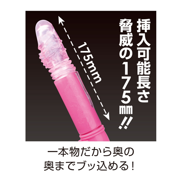挿入可能な長さは約17.5cm!奥の奥まで突き上げる電池式ストレートバイブ(ピンク)。 6Vの強力トルクで激しくピストン!奥を突くと同時にヘッド部分で振動刺激する♪他にもスイングアクション、36種類もの振動パターンを搭載。 静音設計&生活防水の高性能バイブです。