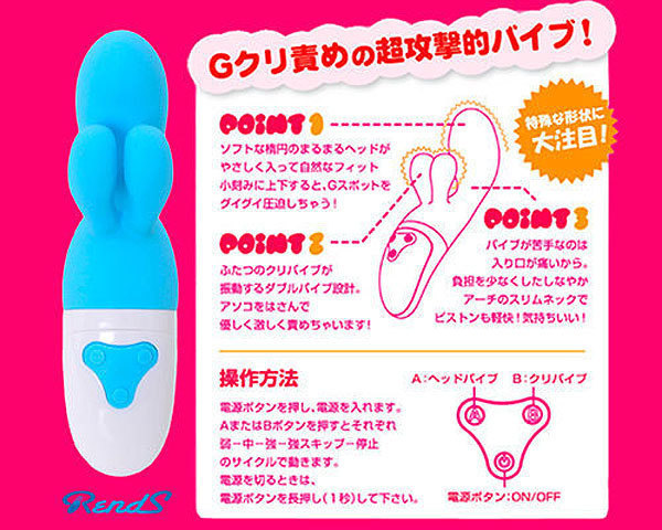 可愛すぎるフォルムに油断禁物!小さな体にパワー満載の小型バイブ。 ●愛らしいフォルムで大人気だった前作のミニタイプ●しなやかに曲がるソフトボディ●最大径36mm程の楕円ヘッドがGスポットを的確に刺激●ダブル突起がクリトリスを挟み撃ち●ヘッドと突起部分は個別操作可能●AorBボタンで振動を操作●電源ON/OFFは1秒長押し。 前作より一回りほど小さくなって再登場!中が狭い女性でも楽しめるよう再設計されたスリムボディで、心身ともに癒されること間違いなしのコンパクトバイブです。
