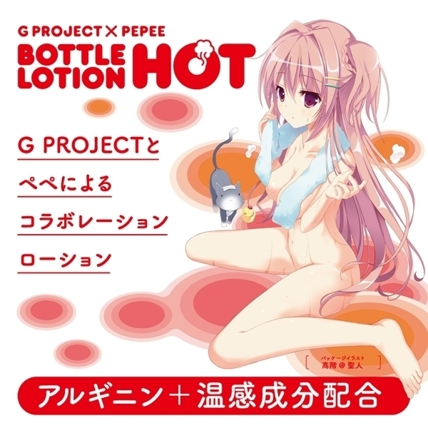 擦る度に温もりが増す!まるで人肌みたいな温感ローション「G PROJECT×ペペ ボトルローション HOT 130ml」。 少量でもよく伸びて広がるハイクオリティーな温感タイプのローションです!安心して使えるG PROJECTとペペのコラボ。 パッケージイラストは人気絵師の高階@聖人氏が手掛ける可愛らしくもちょっぴりセクシーなデザイン♪ほんわりあたたかアルギニン+温感成分配合で、温感ローション特有のベタつきを極力抑え、人肌恋しい冬の時期はもちろん、年中お楽しみ頂けます!糸引きは少なく柔らかくゆるやかな滑りが特徴。 ソロプレイにもカップルでのご使用にもどうぞ♪