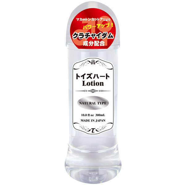 マカ、トンカットアリを超えた!話題のパワーアップ成分クラチャイダムを配合したローション。 ●トイズハートの日本製ローション●自然な潤いをもたらすナチュラルタイプ●たっぷり使える300mlボトル入り。 アルギニンやアスパラギン酸の成分量がマカの倍以上含まれているクラチャイダム(黒しょうが)を配合したローション!汎用性の高い中粘度タイプで使い勝手もバツグンです。