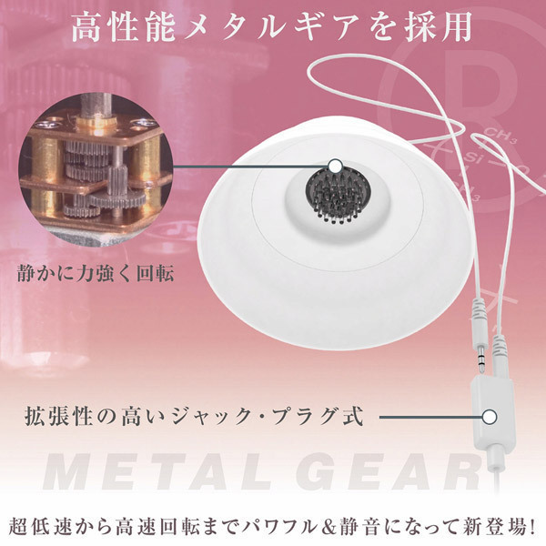 「金属ギア」搭載!静かに、ゆっくり、力強い回転が止まらない!大幅機能アップでもお値段そのまま!美しい流曲線のカップは乳房のサイズやかたちに関係なくやさしく吸着。 カップ内部には静音設計の回転機構が組み込まれており、取り替え可能なマグネット式アタッチメントを自在に回転させます。 上から服を着れば目立つこともなく屋外や公共のスペースでも楽しめる静音設計ですので、あらゆる場面でプレイが可能です。 ●10パターン回転●10段階の回転スピード