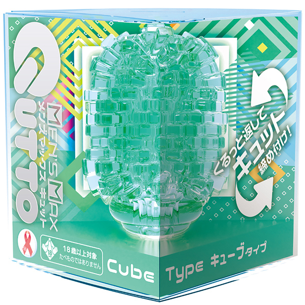 大粒デコボコ刺激がキュット締めつけ!裏返す事で未知なる体験と利便機能を持った変化する密集体ホール。 「Qutto−キュット−」は従来よりも突起が大きく、肉厚になった大粒のデコボコ刺激を搭載。 使用時に本体の凹凸面を内側に返すことで、内側に向かって大粒のデコボコ刺激が密集。 キュット締めつけることで、「未確認の触感」を体験することができます。 キューブタイプは、螺旋状に整然と並んだキューブの集合体。 一つ一つ連なった幾何学的な形状は回転させる事で新たな刺激に。 この商品には個装のローションが付属しています。
