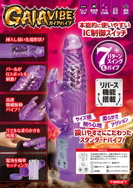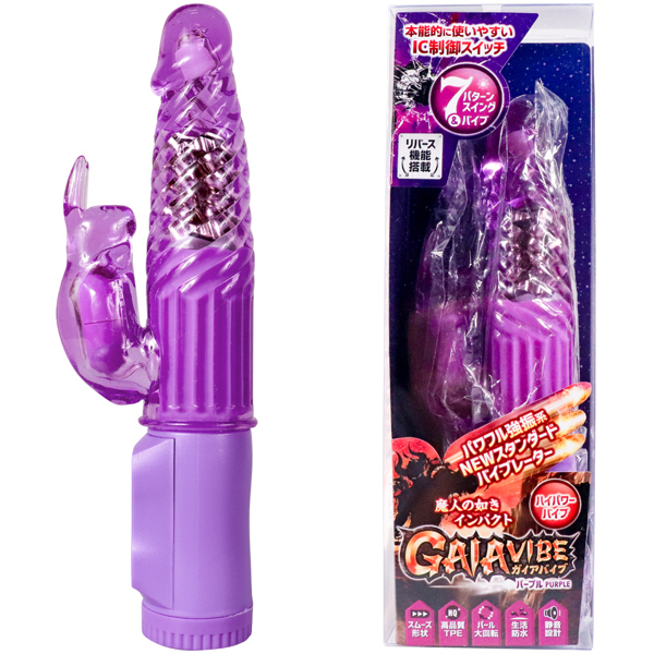 パワフル・丁度良いサイズ感のNEWスタンダードバイブ。 使い勝手の良い7パターン振動&スイングをIC制御。 挿入し易い先端から波打った刺激が味わえる形状とGス〇ットを責める回転パールギミック搭載。 可愛いサブバイブの微細高速振動モーターが外局部をしっかり刺激。 肌触りの良い高品質TPE素材に静音設計・生活防水も装備した正に次世代の魔人系バイブ!カラー:パープル