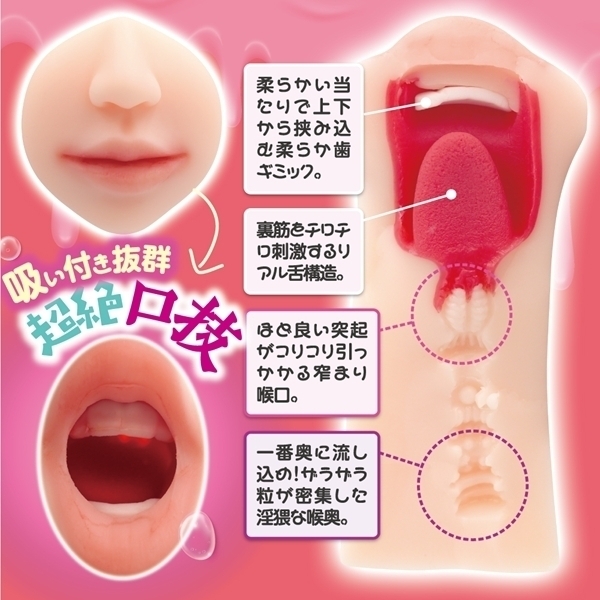 リアルな使用感を追求した非貫通オナホです♪独自の設計で、内部には柔らかな歯とリアルな舌が配置され、自然な感触を楽しめます!喉の奥は徐々に細くなる構造で、しっかりとフィットし、心地よい刺激を与えてくれます♪突起やイボが密集した内部構造がアクセントになり、リズミカルな心地よさを提供します!しっかり空気を抜くことで強力なバキュームが生まれ、安定感のある使い心地が楽しめます♪使いやすいサイズ感で、お手入れも簡単にできるのが魅力!耐久性もあり、長く愛用できる設計です♪リラックスタイムを充実させたい方におすすめのアイテムです!