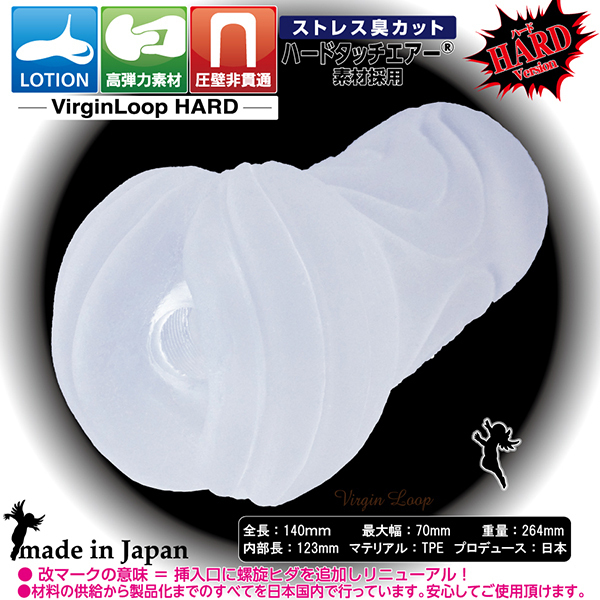 RIDE JAPANの高刺激系非貫通オナホ「ヴァージンループ」が、新たに素材を強化し「ヴァージンループハード」として登場しました。 素材には「ハードタッチ【air】」を採用し、クローバー螺旋構造を強化!より刺激的な細ヒダ地獄がペニスを擦り上げます♪弾力を増した素材とクローバー螺旋構造が絶妙なバランスを保ち、高弾力・グリップ力も抜群!挿入感はぬぷっとしており、ミニボトルローションも付属しています。 「ヴァージンループ」では物足りなかった方や、高刺激のオナホールを探している方におすすめです♪