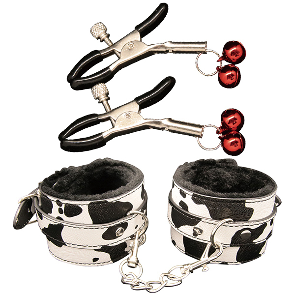 ユニークな牛柄デザインが印象的なSM入門用アイテムです♪セットには手枷・足枷・アイマスク・ボールギャグ・ニップルクリップの5点が含まれています!各アイテムは合皮素材で作られており、扱いやすくやわらかな使用感です♪手枷と足枷はフックで簡単に着脱可能で、初心者にもおすすめです!牛柄デザインはコスチュームと組み合わせることで、より世界観を楽しめます♪アイマスクで視界を遮ることで、感覚を引き立てる演出が可能です!収納や持ち運びにも便利なコンパクトなサイズ設計となっています♪気軽に雰囲気を変えてみたい方にもぴったりなセット内容です!ご家庭での遊びを少しだけ特別なものにしたい方にもおすすめです♪日常とは違う体験を求める方に最適なSMグッズのスターターセットです!●KNK-112